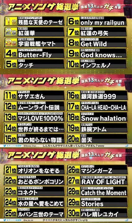 今夜またテレビ朝日でアニソン大投票やるけど前にやったやつはすごかったな
